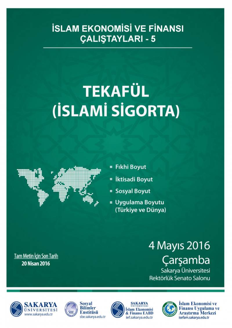 Sakarya Üniversitesi İslam Ekonomisi ve Finansı Uygulama ve Araştırma Merkezi ile Sosyal Bilimler Enstitüsünün organize ettiği çalıştaylar serisinin beşincisinde "Tekafül(İslami Sigorta)" ele alınacaktır.